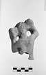 | Description: | Head, two arms, one breast and upper portion of back preserved. Very worn. Both arms bent and holding hair. Traces of paint on face and back. Aphrodite (?). Part of circular vent in back. | |