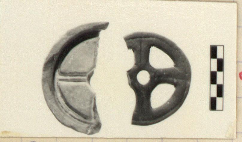 Description:   Half preserved with three of original four spokes.