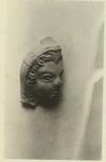 | Description: | The right half of the head is preserved in two pieces. The hair of the figure is parted in the middle and waves down on either side of the face, covered by a cap. Something which has now disappeared was formely attached to the top of the cap. Traces of red paint in the hair. Buff clay. | |