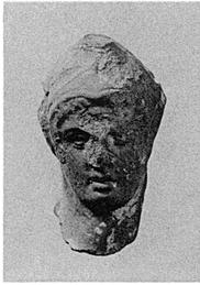 | Description: | Head in close fitting helmet. First interpretation: female head. Broken off at the base of the neck; the surface damaged. | |