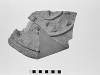 | Description: | Lid fragment with relief decoration. First interpretation: plaque with relief decoration. One small piece does not join. On the surface of the plaque are curving ridges bounding plane bands, carrying, the center one at least an ivy spray. Pale buff clay. Cf. Agora V, p. 19, no. F 89. | |