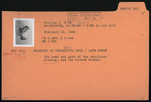 | Description: | The head and part of the shoulders missing, and the bottom broken. Late Roman. Cf. T 525. | |