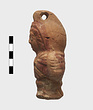 | Description: | Draped and hooded figure. On the head a small handle like the handle of a lamp. A loose object inside suggests that the bust was a rattle. Traces of color: eyes and pedestal white; drapery, purple red; face, orange red. | |