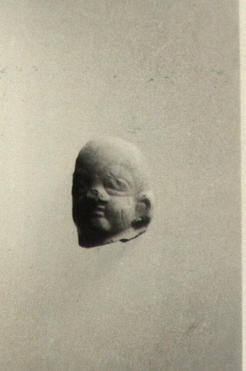 | Description: | Possibly intended as the face of a baby: no hair. Very large ear. Crude work. Pinkish buff clay. | |