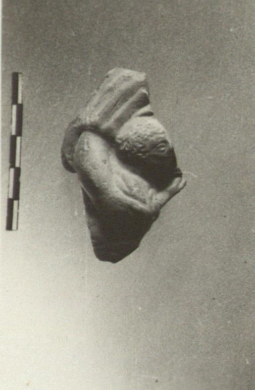 | Description: | Preserved is only the right arm of a woman, draped to the elbow, holding a child whose head and draped shoulder are preserved. The child faces right. Medium fine slightly micaceous clay, brownish yellow where exposed; orange in center. Late Roman. | |