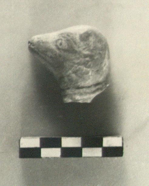 | Description: | Left side of head and neck of dog figurine. Traces of red and white paint. Micaceous buff clay. Cf. T 517. | |