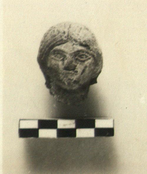 | Description: | Broken away at neck. A rather broad, flat face. The hair parted at center and worn in a projecting mass behind. Traces of white on flesh and hair. Hard reddish clay, blackened on right side. This is the terracotta counterpart of the colossal marble head, S 547 (O 534). Late Roman. | |