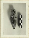 | Description: | Part of seated figure. Broken off at the waist. Decorated from waist down with horizontal zigzags; above waist, the feet of a standing figure (?). The toes indicated by incision. Probably a plagon from a large pot. Cf. T 807, from outside grave 20, in the same position and decorated in the same way, but slightly larger; not impossibly from same pot (and that perhaps P 5499). | |