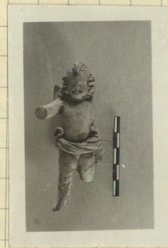 | Description: | Winged Eros, standing. Most of the wings, the left arm, the right forearm, and the lower left leg missing. A twist of drapery around his waist. Considerably remains of red color. ADDENDA: Coarse retouching of hair; holes for flutes. One or two vents (?) | |