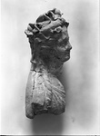 | Description: | Head and bust of a draped woman, crowned with heavy wreath of leaves. The wreath tied at the back by ribands whose square ends fall to the shoulder, beside long tresses of hair. There is an elleptical hole at the back of the neck. White painted. Traces of pink color on drapery, and of yellow on hair. ADDENDA: Leaves over a thick wreath. Rather dull modelling. Blond clay. | |