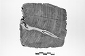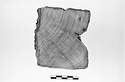 Description:   Flat piece with raised edge, and four shallow oval depressions, each with a hole in the center.