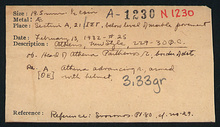 | References: | Publication: Agora XXVI Publication Page: Agora 26, s. 134, p. 108 Publication Page: Agora 26, s. 361, p. 335 Notebook: Α-4 Notebook Page: Α-4-73 (pp. 730-731) Card: Α-1230 |