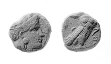 | Obverse: | Head of Athena r., wearing Attic helmet with quadridigité type of ornament. | |
