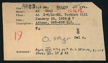 | References: | Publication: Agora XXVI Publication Page: Agora 26, s. 45, p. 19 Publication Page: Agora 26, s. 361, p. 335 Image: 2012.77.1606 (91-1-8) Image: 2012.75.0070 (85-21-24) Card: ΑΑ-23 |