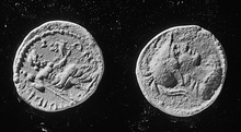 | Obverse: | Bust of Athena r., draped, wearing Corinthian helmet. Border of dots. | |