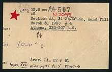 | References: | Publication: Agora XXVI Publication Page: Agora 26, s. 71, p. 45 Publication Page: Agora 26, s. 361, p. 335 Image: 2012.74.1842 (85-15-10) Card: ΑΑ-507 |