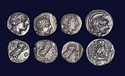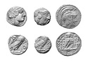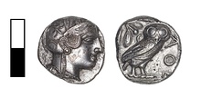 | Obverse: | Head of Athena r., wearing Attic helmet ornamented with palmette and olive leaves. | |