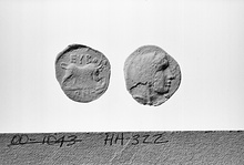 | Reverse: | EYBOI/EΩN Bull butting r.; in exergue at r., wheat ear. | |