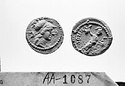 | Obverse: | Head of Athena r., wearing Corinthian helmet; drapery. Border of dots. | |