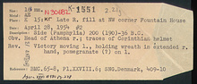 | References: | Publication: Agora XXVI Publication Page: Agora 26, s. 304, p. 278 Publication Page: Agora 26, s. 367, p. 341 Notebook: Κ-15 Notebook Page: Κ-15-82 (pp. 2951-2952) Card: Κ-1551 |