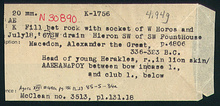 | References: | Publication: Agora XXVI Publication Page: Agora 26, s. 212, p. 186 Publication Page: Agora 26, s. 367, p. 341 Notebook: Κ-24 Notebook Page: Κ-24-58 (pp. 4806-4807) Card: Κ-1756 |