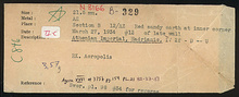 | References: | Publication: Agora XXVI Publication: Hesperia 42 (1973) Publication Page: Agora 26, s. 185, p. 159 Publication Page: Agora 26, s. 362, p. 336 Image: 2012.73.0752 (82-27-33) Deposit: F 10:2 Notebook: Β-3 Notebook Page: Β-3-36 (pp. 455-456) Notebook Page: Β-3-41 (pp. 465-466) Notebook Page: Β-3-56 (pp. 495-496) Card: Β-329 |