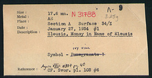Reverse:   EλEYςI above. Piglet stg. r. on mystic staff; ivy branches with leaves, below.