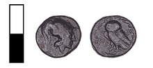 | Reverse: | ΗΘ-Α Owl standing l., facing. All in olive wreath. | |