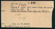| References: | Publication: Agora XXVI Publication Page: Agora 26, s. 127, p. 101 Publication Page: Agora 26, s. 369, p. 343 Image: 2004.05.0260 (82-49-23) Image: 2012.73.1384 (82-49-23) Notebook: Ν-3 Notebook Page: Ν-3-68 (pp. 517-518) Notebook Page: Ν-3-77 (pp. 535-536) Card: Ν-440 |