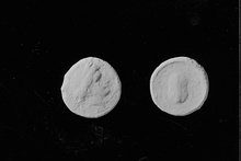 | Reverse: | ςA-λA Shield of Ajax, on which his sword in sheath with strap. | |