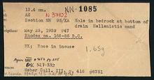 | References: | Publication: Agora XXVI Publication Page: Agora 26, s. 301, p. 275 Publication Page: Agora 26, s. 369, p. 343 Deposit: B 20:9 Notebook: ΝΝ-8 Notebook Page: ΝΝ-8-51 (pp. 1490-1491) Card: ΝΝ-1085 |