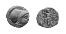 | Obverse: | Head of Athena r., wearing Corinthian helmet; border of dots. | |