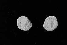 | Reverse: | ςA-λA Shield of Ajax, on which his sword in sheath with strap. | |