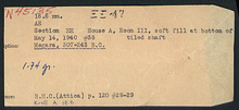 | Context: | House A, Room III, soft fill at bottom of tiled shaft. | |