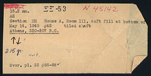 | Context: | House A, Room III, soft fill at bottom of tiled shaft. | |