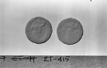 | References: | Publication: Agora XXVI Publication Page: Agora 26, s. 284, p. 258 Publication Page: Agora 26, s. 371, p. 345 Image: 2012.77.1940 (91-11-8) Image: 2012.74.0754 (84-5-32) Image: 2012.74.0755 (84-5-33) Card: ΟΑ-15 |