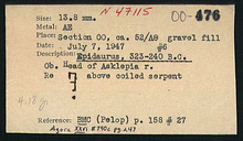 | References: | Publication: Agora XXVI Publication Page: Agora 26, s. 269, p. 243 Publication Page: Agora 26, s. 371, p. 345 Notebook: ΟΟ-4 Notebook Page: ΟΟ-4-59 (pp. 708-709) Card: ΟΟ-476 |