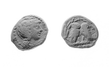 | Obverse: | Head of Athena r., wearing Attic helmet; border of dots. | |