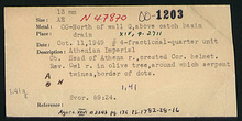 | References: | Publication: Agora XXVI Publication Page: Agora 26, s. 162, p. 136 Publication Page: Agora 26, s. 371, p. 345 Image: 2012.73.0772 (82-28-17) Notebook: ΟΟ-14 Notebook: ΟΟ-18 Notebook Page: ΟΟ-14-60 (pp. 2710-2711) Notebook Page: ΟΟ-18-40 (pp. 3470-3471) Card: ΟΟ-1203 |