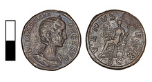 | Description: | Julia Mamaea. Ob. IVLIA. MAMAEA. AVGVSTA. Diademed draped bust right Re. VENVS. FELIX. S.C. Venus seated left holding statuette and sceptre. | |