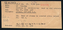 | References: | Publication: Agora XXVI Publication Page: Agora 26, s. 46, p. 20 Publication Page: Agora 26, s. 362, p. 336 Image: 2004.05.0086 (82-39-26) Image: 2012.73.1030 (82-39-26) Card: ΒΒ-1203 |