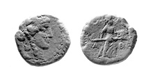 | Obverse: | Head of youthful Dionysos r., wearing ivy wreath; border of dots. | |