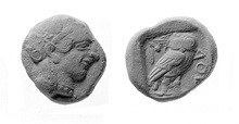 | Obverse: | Head of Athena r., wearing Attic helmet ornamented with palmette and olive leaves. | |