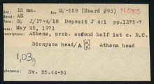 | Notes: | Coin no. 559; Hoard, coin no. 93. | |