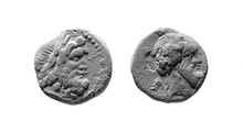 | Reverse: | Α-Θ/Ε Head of bearded Dionysos r., wearing ivy wreath. | |