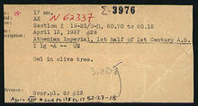 | References: | Publication: Agora XXVI Publication Page: Agora 26, s. 161, p. 135 Publication Page: Agora 26, s. 374, p. 348 Image: 2012.73.0737 (82-27-18) Card: Σ-3976 Card: Σ-3976 |