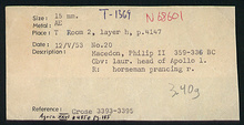 | References: | Publication: Agora XXVI Publication Page: Agora 26, s. 211, p. 185 Publication Page: Agora 26, s. 375, p. 349 Card: Τ-1369 |