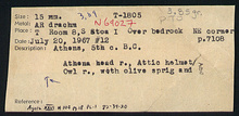 | References: | Publication: Agora XXVI Publication Page: Agora 26, s. 44, p. 18 Publication Page: Agora 26, s. 375, p. 349 Images (4) Card: Τ-1805 Card: Τ-1805 |