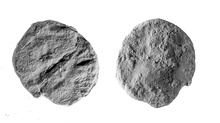 | Description: | Plated bronze counterfeit tetradrachm. No silver preserved; disfigured by deep chisel cuts and corrosion. The large size of the owl precludes attribution to any pre-480 B.C. owl series. Type as Agora XXVI, nos. 9, 16, or 23. | |