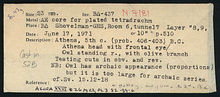| Context: | Greek House δ, Room 6 (Tunnel), Layer "8" or "9" or "10" (found by shovelman in fill from that room). | |